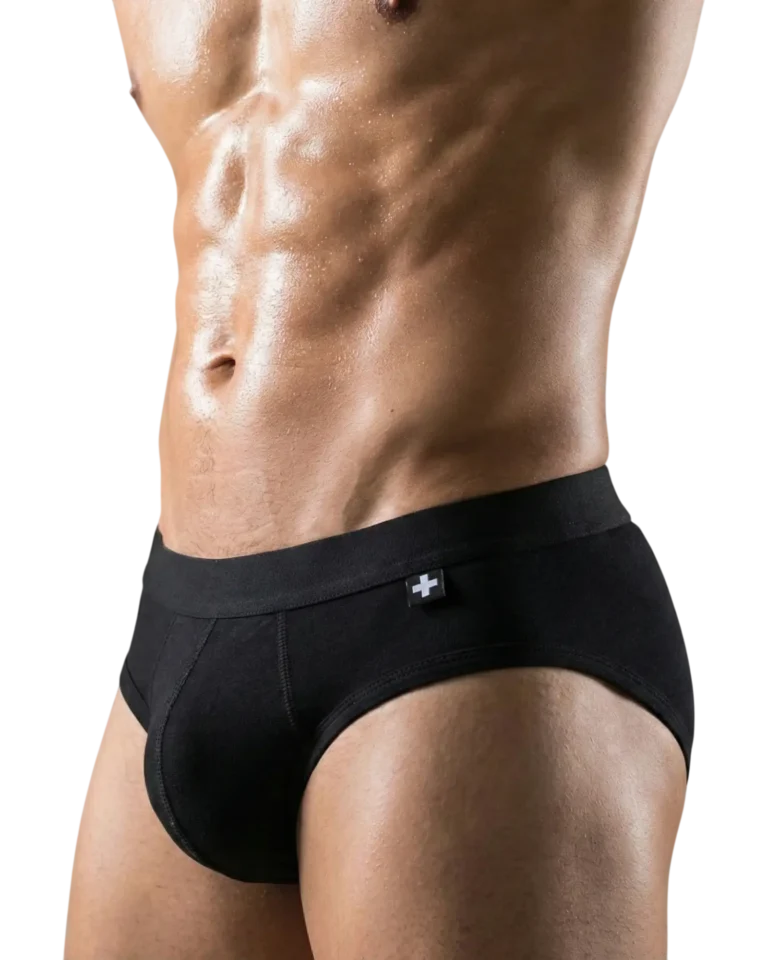 142 Brief Auss Algodon Realce – L 32-34, Negro Rojo